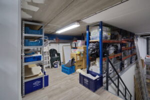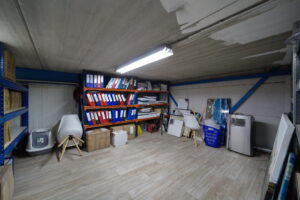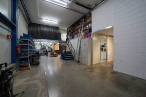 De begane grond herbergt een bedrijfshal van 138 m² met praktische voorzieningen zoals een elektrisch bedienbare overheaddeur en luchtverwarming door middel van een heater. De tussenvloer van 56 m² biedt aanvullende opslagruimte, terwijl de overdekte buitenopslag zorgt voor extra logistieke mogelijkheden.